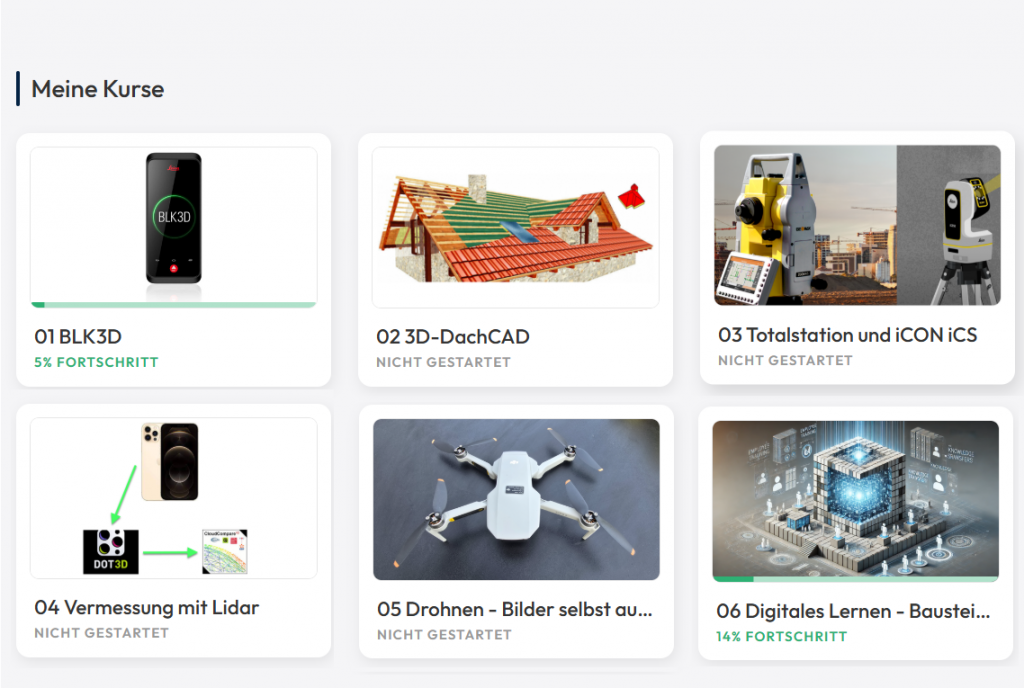 Zu jeder Lösung gehört eine passende Schulung: In der Lernplattform von RL Dachsoftware lernst du Schritt für Schritt, wie du 3D-DachCAD, BLK3D, Lidar/Vermessung und Drohnen-Auswertung in deinen Alltag integrierst – mit Videos, Praxisbeispielen und persönlicher Unterstützung.